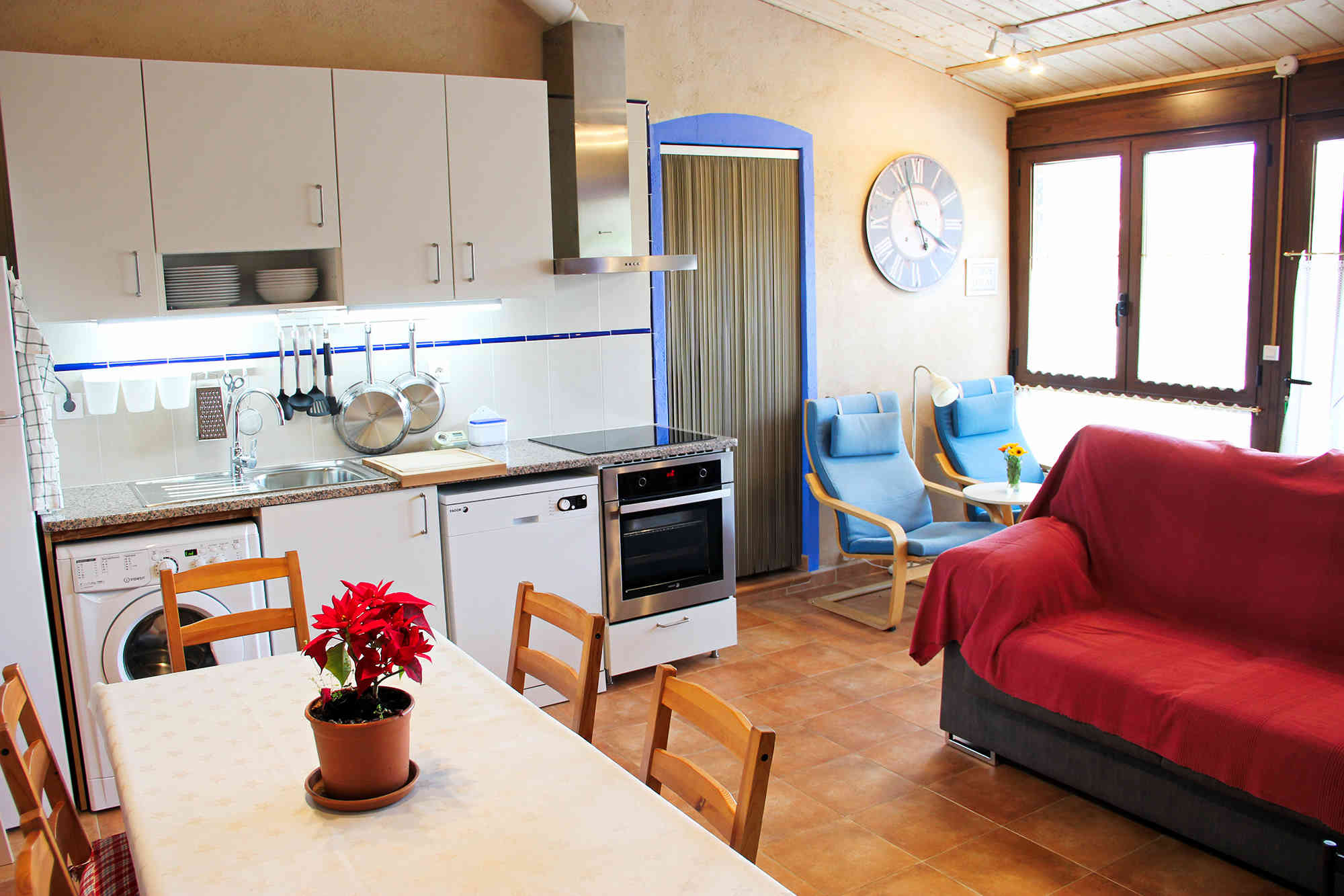 Bonito apartamento totalmente equipado de 5 plazas; dos habitaciones (una con una cama de 150x200, otra con dos camas de 90x200 y otra de 80x200). Cada habitación cuenta con su propio baño y televisión. Salón/comedor/cocina de 25 metros cuadrados, cocina totalmente equipada, sofá, sillones y gran pantalla de televisión.