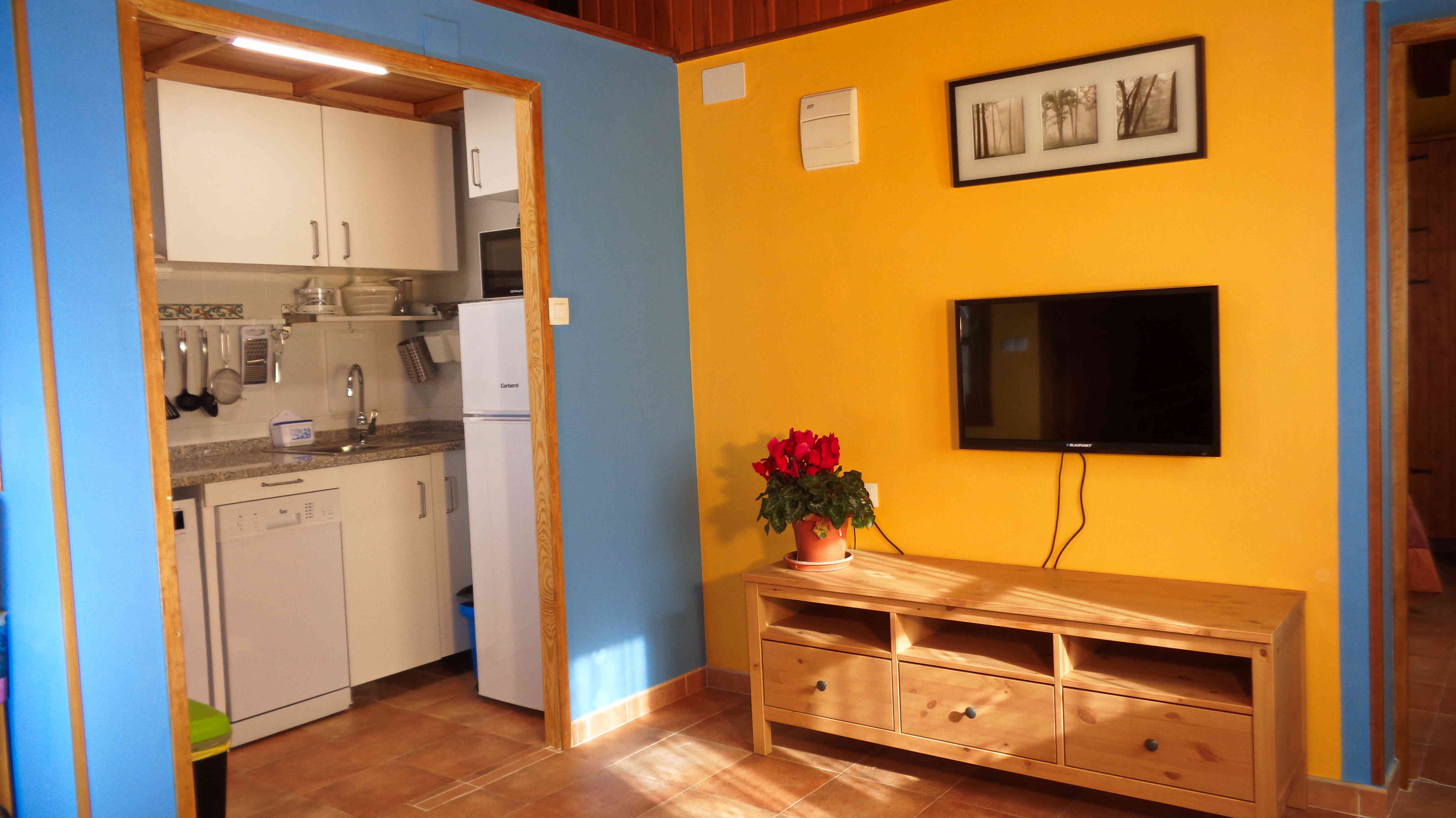 Precioso apartamento totalmente equipado con capacidad para tres personas. Dispone de un salón/comedor/cocina de 20 metros cuadrados; una habitación con TV, cama de 150x200 y otra de 80x190. Baño completo en la habitación.